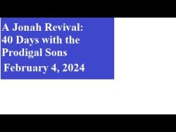 “A Jonah Revival: 40 Days with the Prodigal Son” – February 4, 2024 February 4, 2024 Video Message: “A Jonah Revival: 40 Days with the Prodigal Son” By: Rev. Vickie Perkins Date: February 4, 2024 Type: Combined SHARE ON Twitter Facebook Buffer LinkedIn Pin It Leave a Reply Cancel replyYour email address will not be published. Required fields are marked *Comment * Name * Email * Website Δ Continue Reading “A Jonah Revival: 40 Days with the Prodigal Son” – January 28, 2024 “A Jonah Revival: 40 Days with the Prodigal Son” – February 11, 2024